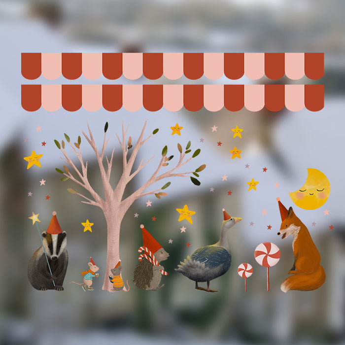 Fensterbild Weihnachten bei den Tieren