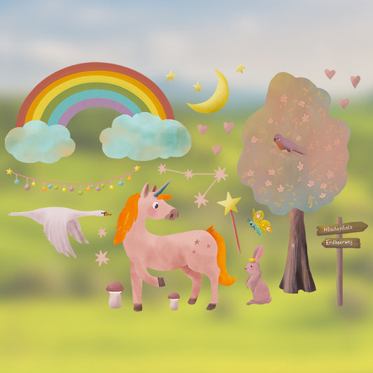 Fensterbild Einhorn Zauberwald